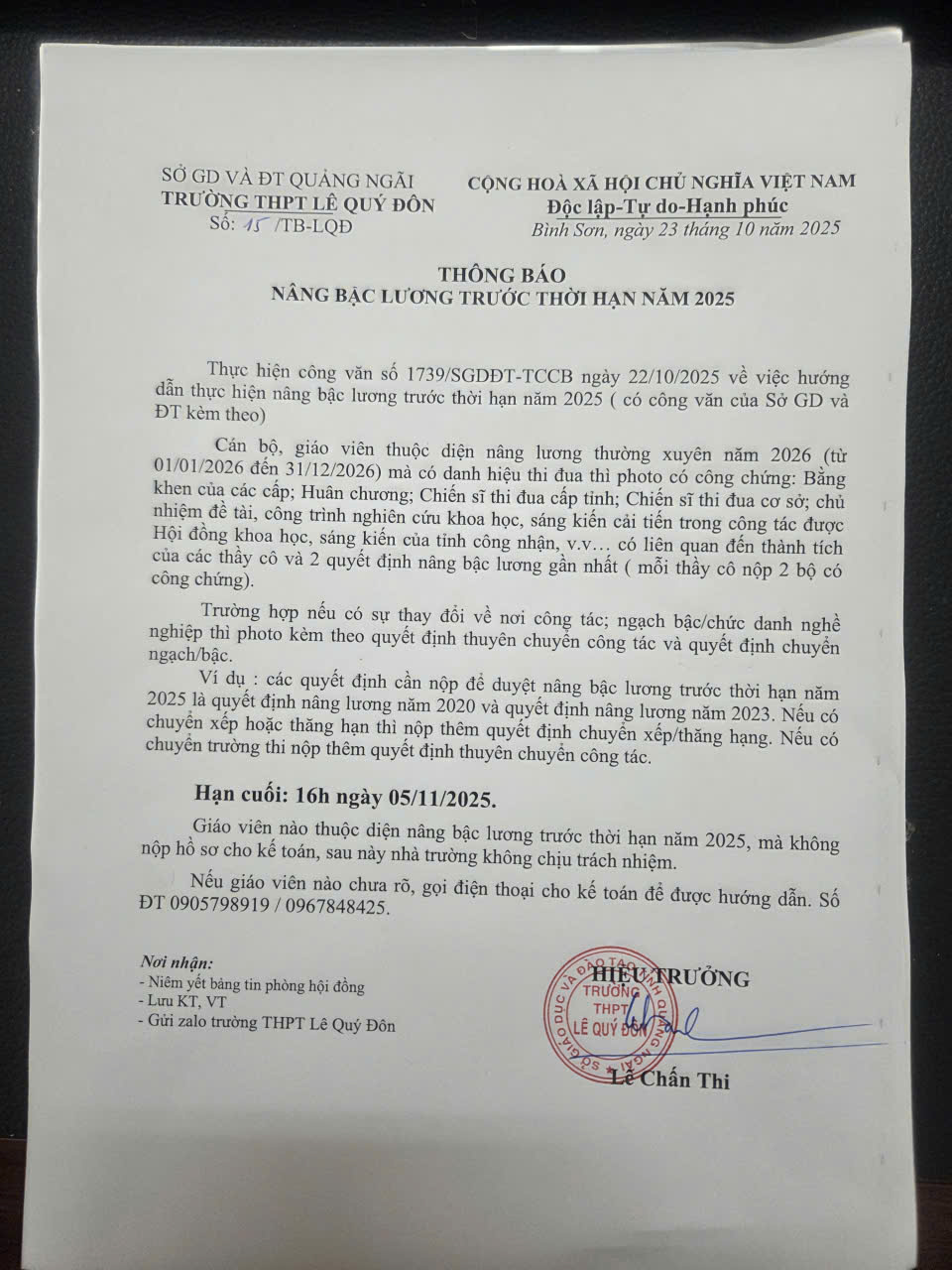 THÔNG BÁO VỀ VIỆC NÂNG LƯƠNG TRƯỚC HẠN NĂM 2025
